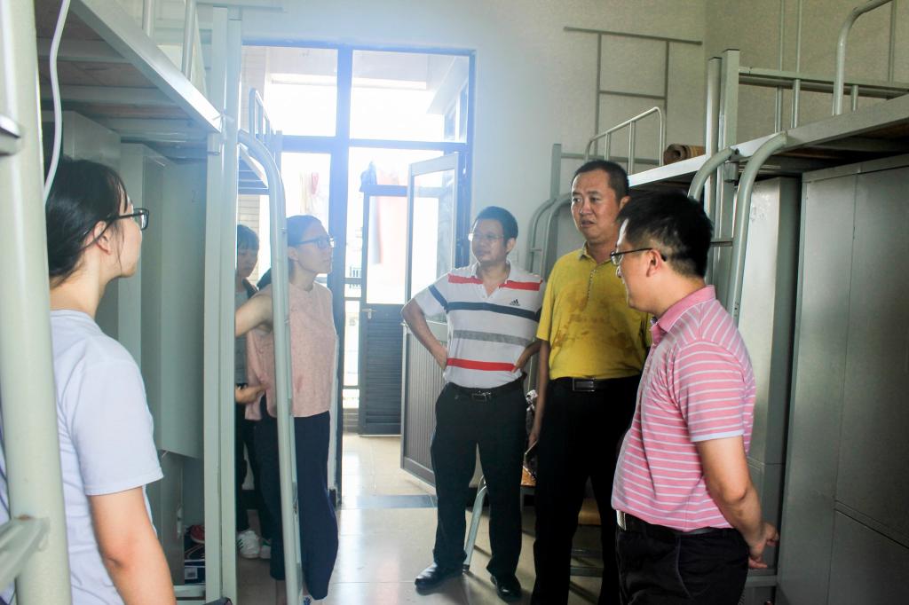 下午,领导老师们探访了新生宿舍,了解新生们的基本情况。许建鑫书记对员工家长说到:“放心把孩子送到学校,让孩子学会独立,我们学校的书记辅导员老师还有师兄师姐都会帮助他们的。”并且嘱咐新生们要注意身体,慢慢适应广州的生活。