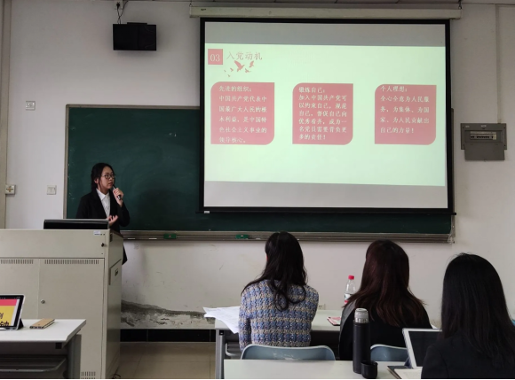 会上,9位发展对象候选人以PPT形式进行汇报,向评委老师和同学们展示了自己在思想政治、学习情况、工作实践、志愿服务等方面的情况,敢于承认自身不足并明确改进方向。